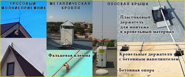 Помимо соединения в единую сетку проводники также необходимо надежно закрепить на кровле. Быстрее, проще и надежнее осуществлять эти операции, используя специальные держатели, зажимы, соединители, молниеприемные стержни и другие комплектующие систем молниезащиты известных производителей с большим опытом работы в этой области: OBO Betterman, Dehn-Sohne, Galmar или Elko-Bis. В этом случае будет учтен фактор сочетаемости различных материалов самой системы молниезащиты и особенности строительных материалов здания.